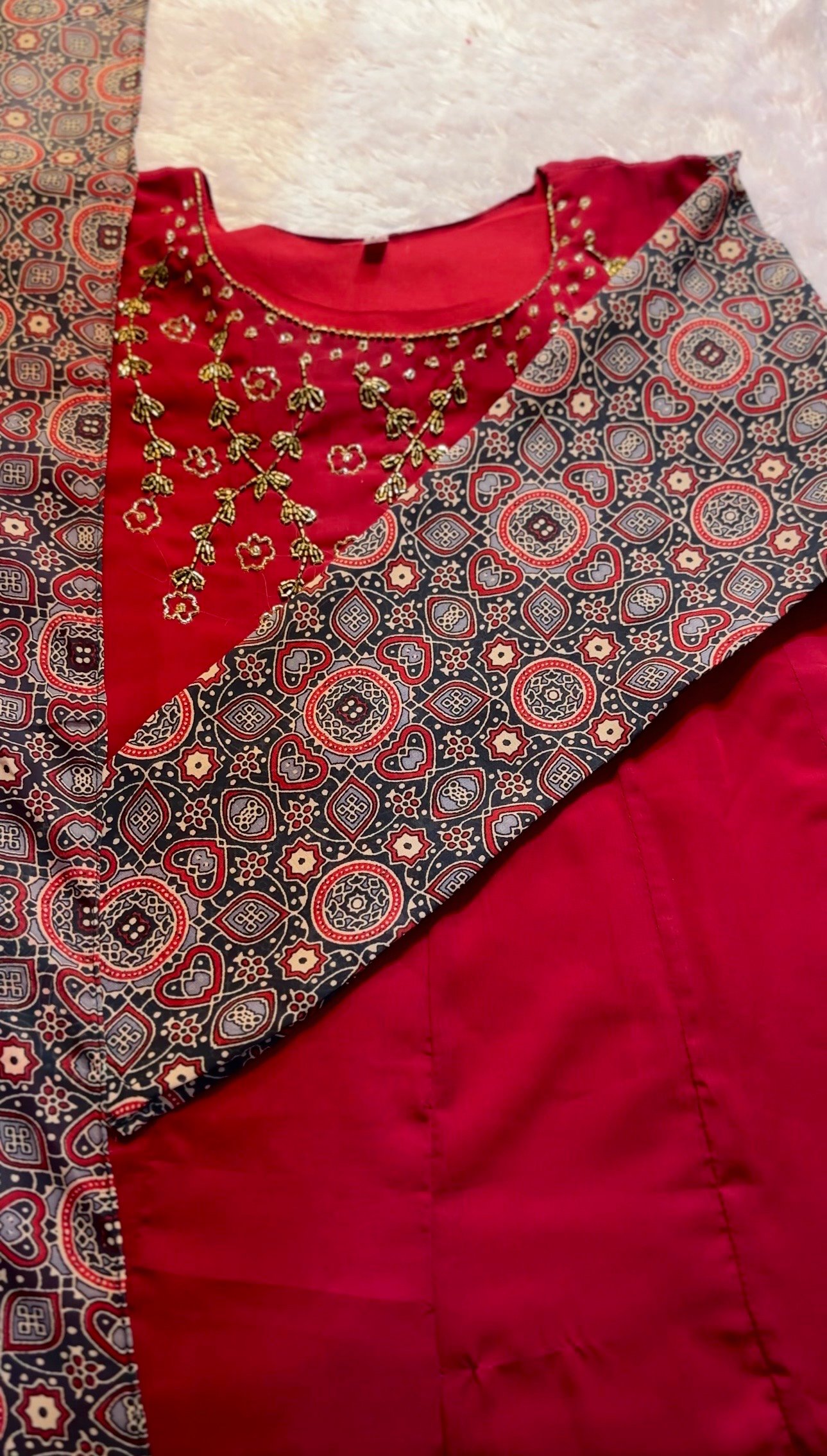 Kalamkari patch mirror work kurthi